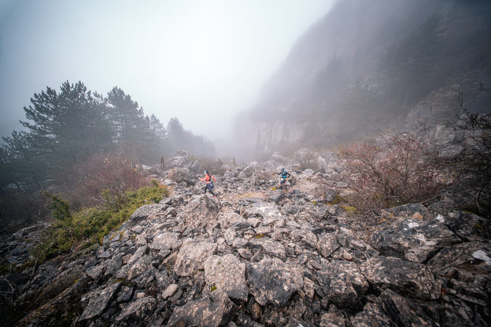 Et ce n’est pas fini avec une remontée en direction du chaos rocheux du Ségalasse pour grimper ensuite par le sentier pointant le Roc de Fabre, encore une belle section technique classique des Causses (et des Templiers…). Le plateau s’offre alors aux coureurs pour mettre le cap sur le cirque rocheux de Tournemire, magnifique enclave parée de belles falaises, la descente est rapide, plus assagie et moins humide pour éviter la zone marneuse souvent gorgées d’eau.